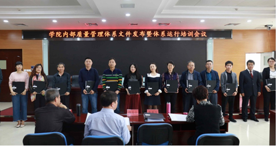 本次学院内部质量体系文件的发布以及相关培训,标志着学院内部综合治理体系进入到运行阶段,形成了以质量提升为目的,以过程控制为手段,以规范管理为重心的高效、实用的标准化管理体系。学院将借此更加有效保证人才培养工作的科学性、规范性和有效性,为稳步提升人才培养质量提供有力的机制保证。