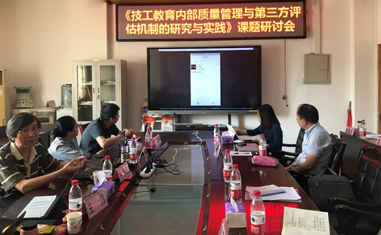 韶关市技师学院刘志刚主任介绍子课题“技工院校内部质量管理与第三方评估机制建立的政策环境研究”阶段性研究成果。刘主任在汇报中提出,如果没有刚性的政策要求,重视质量管理就是一句空话。建立质量管理体系必须纳入政府的政策要求,主管部门必须做好制度设计,并持之以恒,否则前功尽弃。同时对制度设计提出思考建议,汇报中也介绍了广东省技工院校质量管理的政策经验。大家围绕这部分内容也展开了讨论。