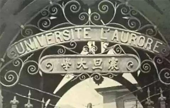 震旦是印度对中国旧称,英、法文校名分别为Aurora和L'Aurore。