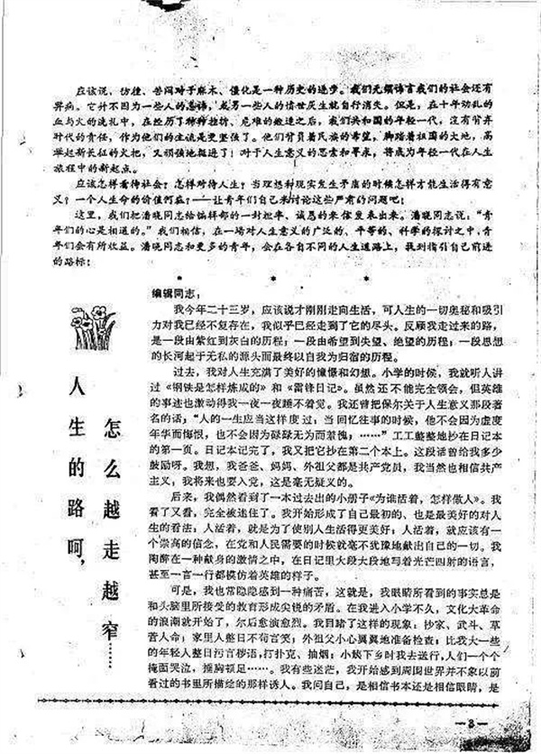 《中国青年》杂志1980年第五期刊发一篇“潘晓来信”《人生的路啊,怎么越走越窄……》。这样的“吐槽”,过去视为错误思想加以批判,甚至会被当作反动观点给当事人带来不测。