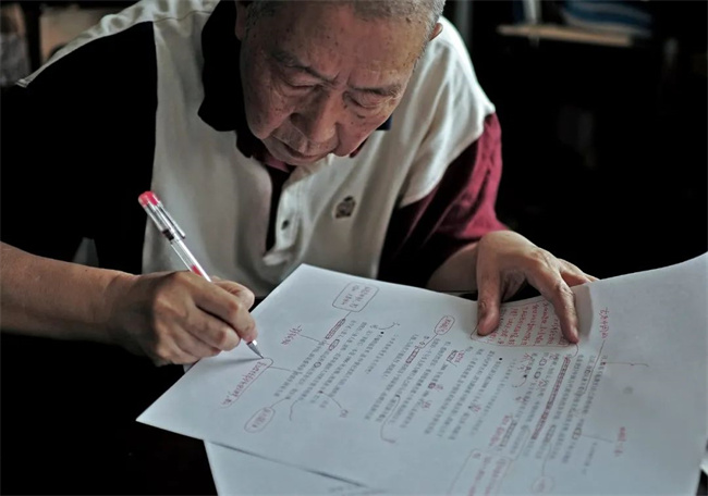▲晚年锺叔河在工作中 图/受访者提供 摄影/王平