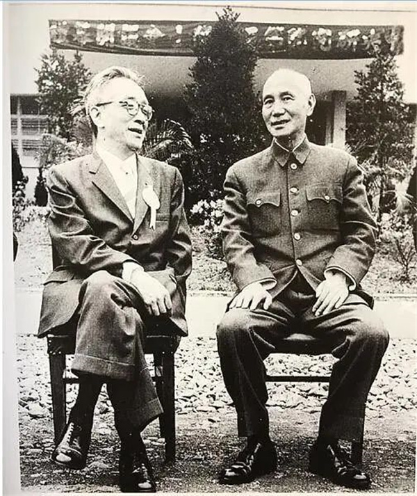 在一张1958年的旧照片上,木椅上面安坐的是两个民国历史上声名显赫的人物。就在同蒋介石合影之前,胡适在“中央研究院”院长就职典礼暨第三届院士会议上,同蒋介石发生了激烈的交锋。胡适对会上蒋介石以领袖身份发表的讲话极其不满,他认为蒋介石的论述违反了学术研究的独立原则,干涉了学术研究的自由。