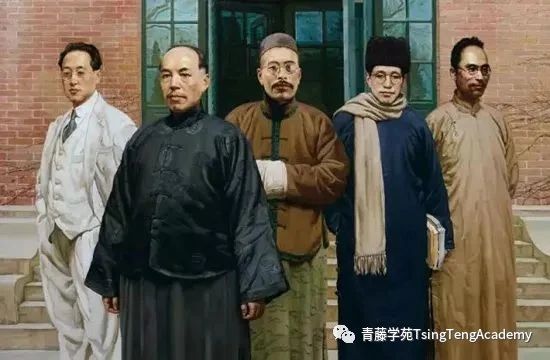 其实我自己本也不知道,在给清华大学叫来帮忙教书前,我仅听说过以上五位老先生的名字,要不是那幅创作,我也不知道清华大学有过这么一所“国学研究院”,问了人,才知道早在1952年,清华大学的人文学科就给全部砍掉了,那一年,我还在母亲的肚子里。