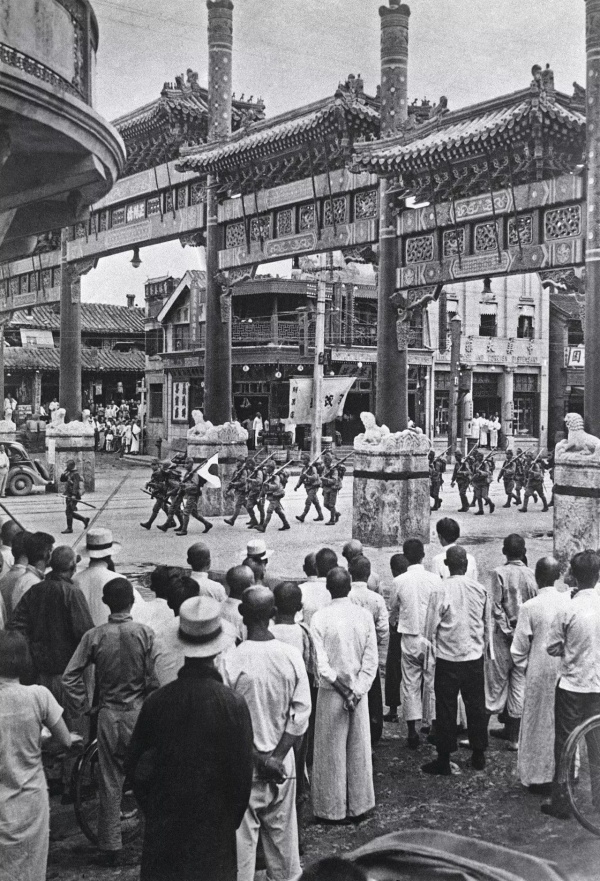 ▲ 1937年8月26日,北平市民注视穿过正阳门牌楼的日本军队