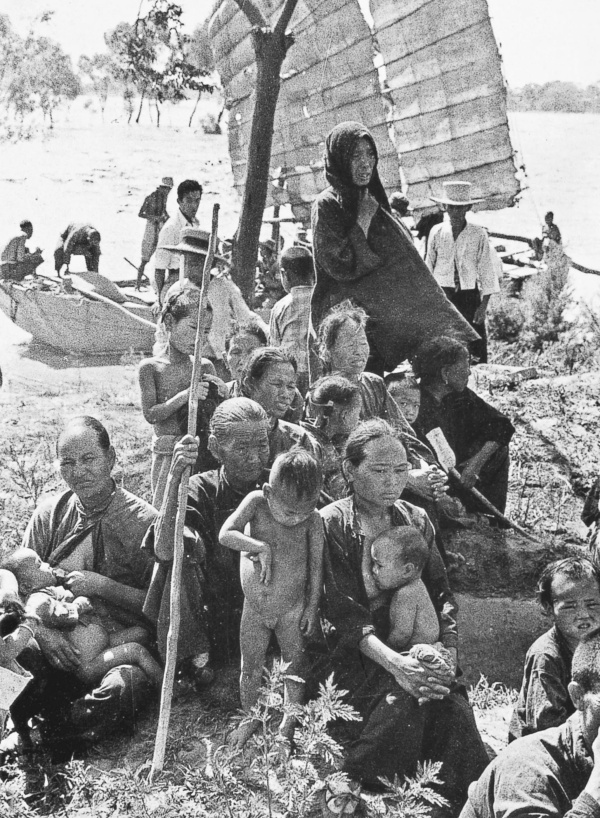 ▲ 1938年,河南花园口黄河决堤,帆船运送失去家园的妇孺