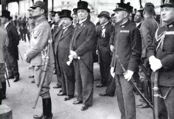 ▲ 1940年4月23日,汪伪行政院副院长兼伪外交部长褚民谊率队欢迎日本特派大使
