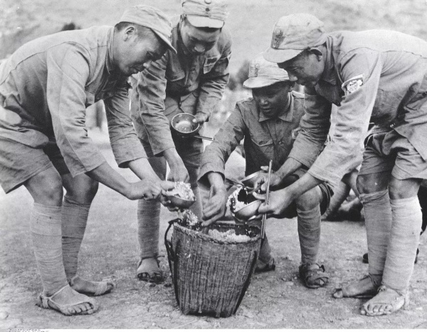 ▲ 1941年,在云南作战的中国军人日常单一的餐食