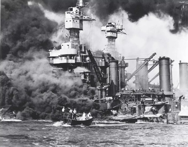 ▲ 1941年12月7日,在珍珠港被日本飞机炸毁的美军战列舰