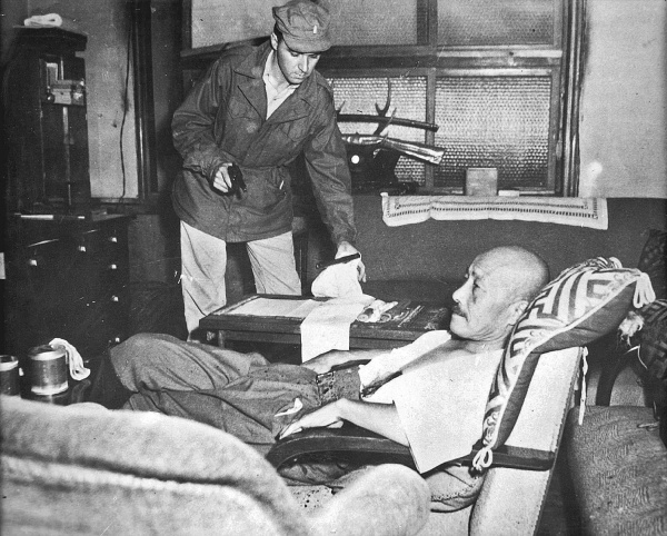 ▲ 1945年9月8日,日本战犯东条英机开枪自杀未遂
