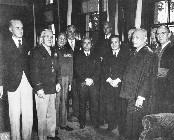 ▲ 1947年,中国外交部长王世杰与远东国际军事法庭法官合影。